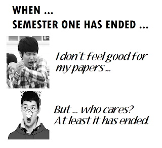 hee masa exam sedang dijalankan , Kyra takut gila . Ok first time kyra menggigil bila pegang kertas peperiksaan .. sebelum ni macam , eley exam biasa je ni .. Masa SPM pun tak macam ni .. Mengapakah ? hahaha i dont even know why im acting like that hee .. Dalam kelas tu ada dua orang yang jaga kami .. Sorang PA kami , sorang lagi tah lect mana tah .. Muka dia , pergghh ! taknak garang pula kan hahaha .. Rasa macam nak tombok tombok muka dia supaya senyum sikit hee .. First paper , subject Office Administration .. Rasa bersyukur sangat-2 sebab soalan dia tak sesusah dolu-2 .. Kyra ada buat soalan past sem , susah gila :'/ .. Tapi nasib baik paper untuk sem nii agak senang .. ada perkataan agak ea . so means tak semua senang .. Second paper is , Microeconomics .. Haaa tu subject fevret gila ! subject TERCINTA *tangan kat bahu , mata ke atas* . Haha tapi Alhamdulillah laa juga , nasib baik boleh buat .. Sebab malam tu kyra ada dapat topic-2 spot yang masuk .. Hee semua masuk kot .. Nasib baik study hahaha ..